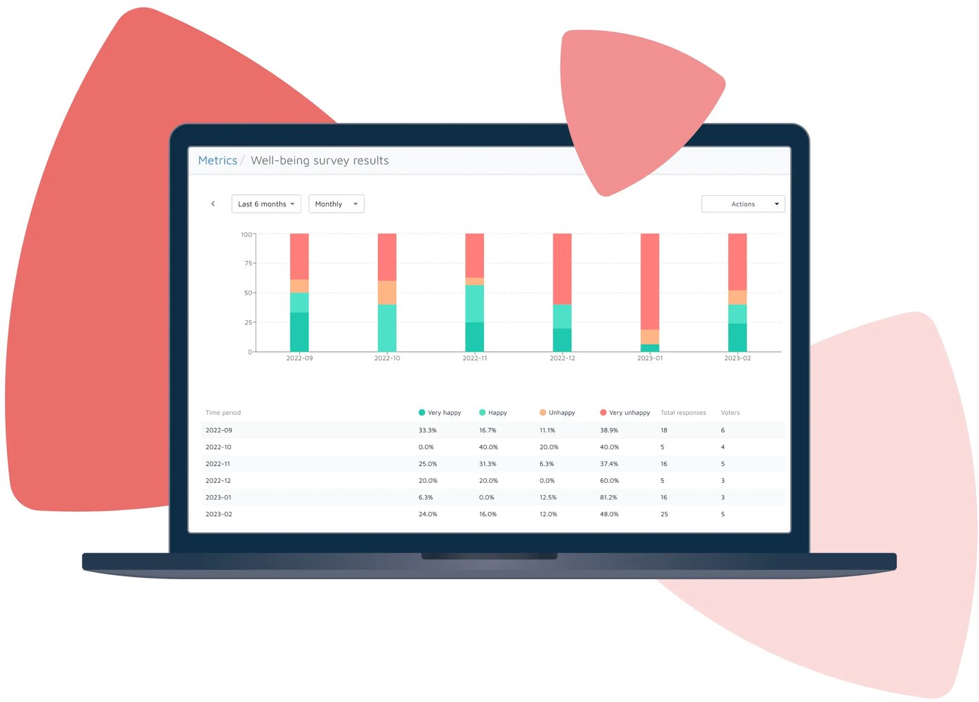 Hyvinvointikyselyt eivät ole pelkästään esihenkilöstön tai johdon asia. Niiden koosteita saatetaan jakaa myös työntekijöille itselleen kiitoksena hyvästä työstä, joko säännöllisellä rytmillä tai yrityksen erityisissä juhlahetkissä. Myös näin rakennetaan yhteistä, hoitotyötä arvostavaa kulttuuria.